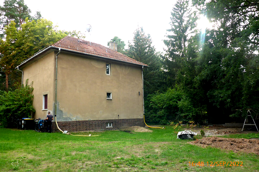 Das 2-geschossige freistehende Wohnhaus mit Walmdach aus den 30ern steht in einem waldnahen, naturbezogenen Wohngebiet. Es wurde energetisch saniert und um ein offenes Raumkonzept im Wohn-, Koch- und Essbereich erweitert. Das Konzept arbeitet auf allen Ebenen mit dem Thema Alt-Neu: