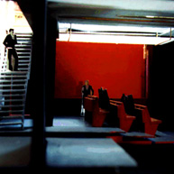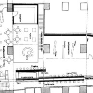 Spektakuläres Highlight der Raumkomposition ist die die Längsrichtung des Raumes betonende Medienwand mit Screens, Internetplätzen, Informationstafeln, die durch eine gleichgerichtete Bar ergänzt wird. Die Bühne liegt im Zentrum des Grundrisses und ist von allen Seiten einsehbar, auch vom Restaurant, das an der belichteten Außenseite der Bahnhofsfassade liegt, mit externem Zugang von außen. In unmittelbarer Nähe des Mallzugangs liegen die Shops , die auch z.B. für Promotionaktionen fremd vermietet werden können. Im Untergeschoß befindet sich ein kleines Kino.