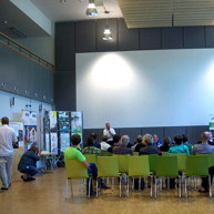 Bei Anfrage an die anwesenden Mitarbeiter der Stadt besteht auch die Möglichkeit zu Führungen durch das Gebäude der Plusenergieschule.