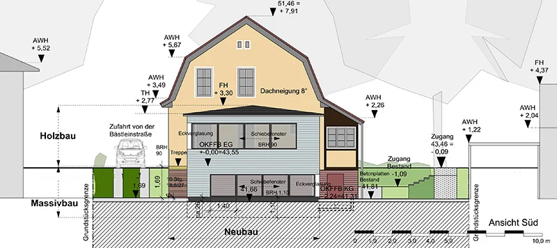 Baukonstruktion Bestand Massivbau, Erweiterung KG Massivbau/ EG Holzbau
