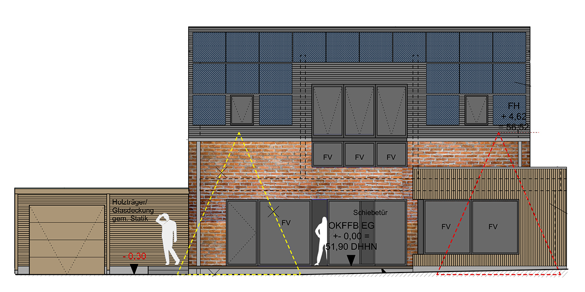 In einem gewachsenen Wohnviertel im Berliner Norden entsteht dieses Haus mit besonderer Ausstrahlung. Ungewöhnlich für Berlin, ungewöhnlich auch für unser Büro ist das Fassadenmaterial, das nicht ganz zufällig an das Münsterland erinnert, die Heimatlandschaft der Bauherrin. Der BPlan hat uns mal wieder die Grenzen der Grundfläche gesetzt, daher ist das Kernhaus mit Satteldach optimiert und im Erdgeschoß um eine Wohnraumerweiterung ergänzt.