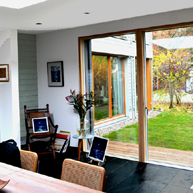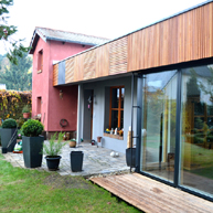 Das bestehende Gebäudeensemble wurde von uns bereits 2006 mit einem Holzbau ergänzt (Projekt Bauen im Bestand/ Fenster zum Himmel). Nun wurde auch der Wintergarten komplett erneuert. Bei dieser Gelegenheit haben wir die Ausblicke und Zugänge zum Garten optimiert, die Fassadenelemente aufeinander abgestimmt und insgesamt ein einheitliches Material- und Farbkonzept entwickelt.