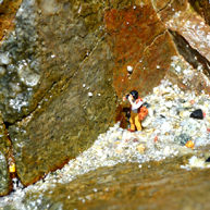 MikroMakro spielt mit dieser Wahrnehmungsveränderung. Indem der Bezugsmaßstab stark verkleinert wird, wird das Ambiente drumherum anders wahrgenommen. Die violette Blüte wird zum romantischen Baldachin, das schleimige Seegras zum samtigen Teppich, der harmlose kleine Spalt im Felsen zum bedrohlichen Felsüberhang. MikroMakro nutzt vorhandene Räume und führt sie in eine andere Wahrnehmungsebene.