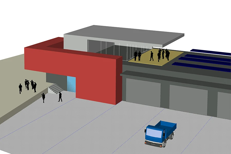 Funktion Neubau eines Betriebsgebäudes für ein Tiefbauunternehmen, mit Verwaltungsräumen
