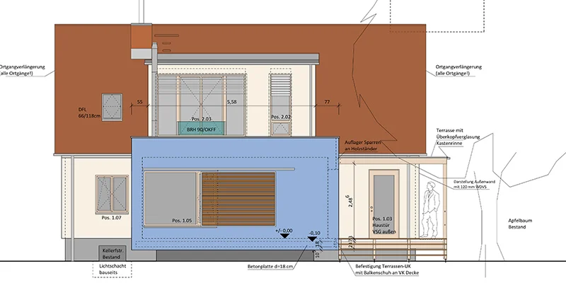 Baukonstruktion Bestand Massivbau, Neubau Holzbau