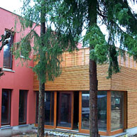 - Massivbau mit WDVS und Putz bzw. Dämmgefach und hinterlüfteter Holzfassade (Lärche Rautenschalung)