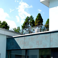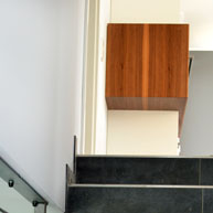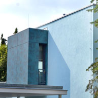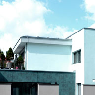 Auf einem geteilten Grundstück in einem gewachsenen Wohnviertel, Nähe S-Bahn Berlin Zehlendorf, entstand 2014 dieses Passivhaus in Massivbauweise für 2 Familien. Im Entwurf wurde die Gartenatmosphäre auf der Sonnenseite in den Innenraum einbezogen durch maximal verglaste Wohnräume in allen Ebenen. Das gesamte Bauvolumen staffelt sich in mehreren Bauteilen von einer 2-geschossigen strassenseitigen Bebauung zum eingeschossigen „Gartenpavillon“ – der Wohnhalle – und fügt sich somit gut in die bestehende Bebauung ein. Material- und Farbkonzept der Fassaden sind differenziert und nehmen darauf Bezug.