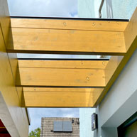 Möglich gemacht hat diesen langgestreckten Baukörper der Baunutzungsplan aus den 1960er Jahren. Im Berliner Süden entstanden in den 60er und 70er Jahren viele dieser clusterartigen Hausgruppen, verschachtelten Baukörper bzw. Reihenhausgebilde. Durch die großzügigen Glasflächen in Erd- und Obergeschoss war es möglich, genügend solare Energiegwinne zu generieren, um den Passivhausstandard zu erreichen, obwohl der Baukörper selbst in quasi Nord-Süd-Richtung keine ideale Voraussetzung dafür bot.
