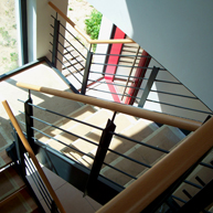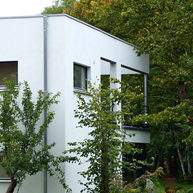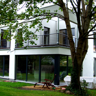 Direkt am Südufer der Havel lag dieses Grundstück mit schönem Baumbestand. Der Bebauungsplan sah für freistehende Häuser ein jeweils quadratisches, kompaktes Baufenster vor. Dadurch entstand in der Bebauung der Charakter von Stadtvillen im Grünen. Das energieoptimiertes KfW-40-Haus für eine 5-köpfige Familie öffnet sich mit viel Fensterfläche zu Garten und Wasser. Im Erdgeschoss liegen die Familienräume und der komplette Elternbereich. Im Obergeschoss haben die 3 Kinderzimmer einen direkten Zugang zur gemeinsamen Dachterrasse und somit auch den gleichberechtigten Blickkontakt zum See. Ein offener Gemeinschaftsbereich, ein Gästezimmer und eine eigene Teeküche ergänzen das Raumprogramm.